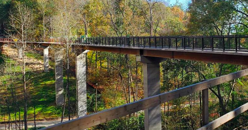 Highlighted by a towering trail bridge in the treetops, the .75-mile segment was considered the Buckhead project’s last major, unfinished piece. It’s not yet a full Ga. Highway 400 commuting alternative between, say, Dunwoody and Midtown, but it’s steadily getting there.