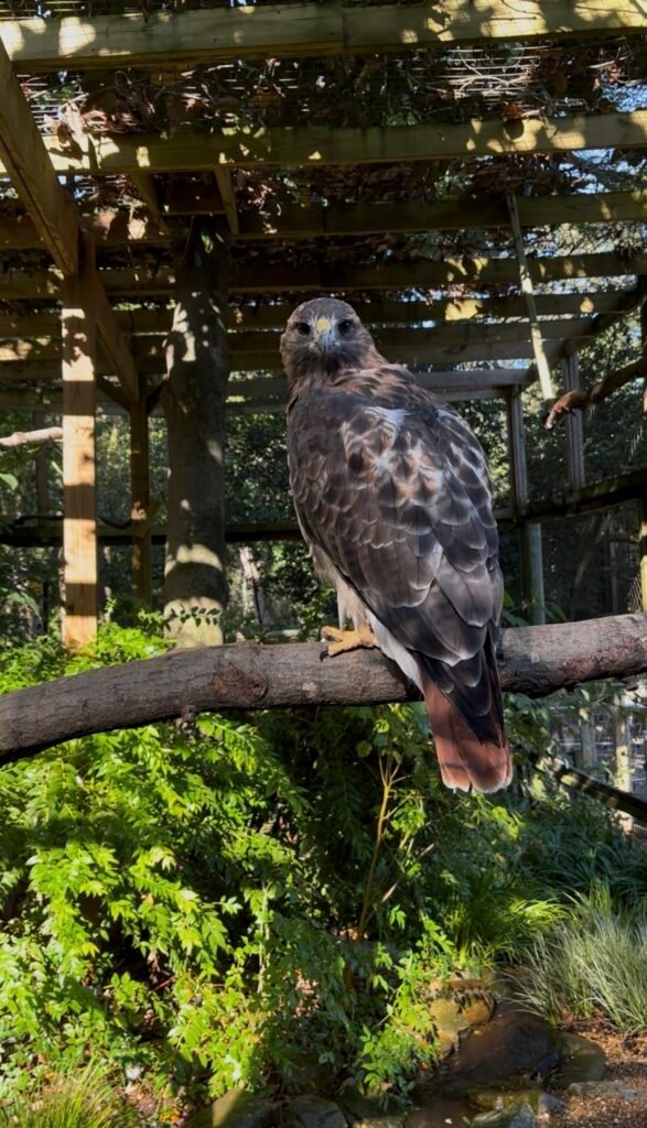 Rose the red-tailed hawk, who many of you will remember seeing in the aviary next door to the World of Wild Theater presented by Georgia Natural Gas, gave us a wonderful opportunity to highlight not only a native species, but a memorable individual. Born in the wild, she was found with an eye injury which left her unable to see most things on her right side. Although she was successfully rehabilitated at a wildlife center and the injury healed, due to her restricted vision, she was deemed as non-releasable and thus required a permanent home in human care. We were proud to be Rose’s home from 2020 until earlier this week, when she passed away during a procedure involving anesthesia.