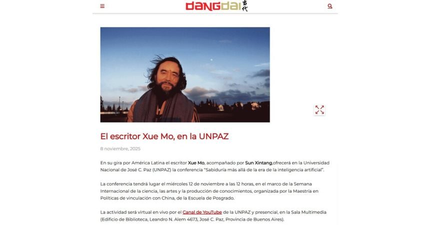 Following the Peru event, Xuemo will join Professor Xintang Sun at Argentina’s Universidad Nacional de José C. Paz (UNPAZ) for a lecture titled “Wisdom Beyond the Age of AI.” Hosted by UNPAZ President Dr. Darío Kusinsky, the session will feature live interpretation by Prof. Xintang Sun, Director of the Confucius Institute at the University of Magallanes and the Latin American Studies Center at Beijing Language and Culture University. The lecture forms part of UNPAZ’s “International Week of Science, Art, and Knowledge Production” and will be streamed live on YouTube.