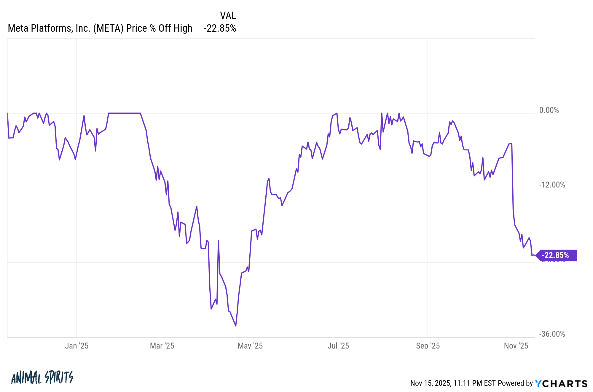 And what does a crash look like? A 20% decline is nothing. Meta is down more than 20% from the highs right now: