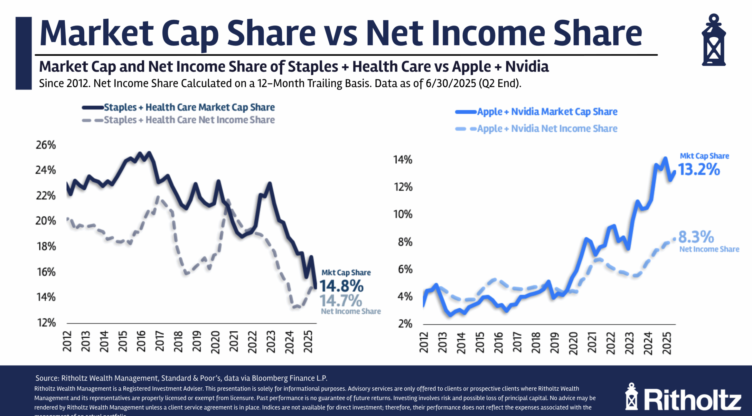 Apple and Nvidia alone are now worth nearly as much as the health care and consumer staples sectors combined.