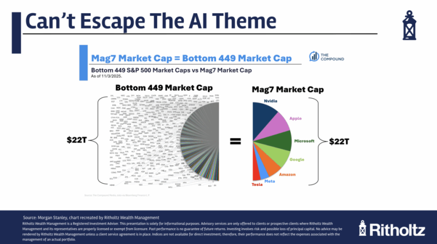 The Mag 7 stocks are now as big as the bottom 449 stocks in the S&P 500 combined.