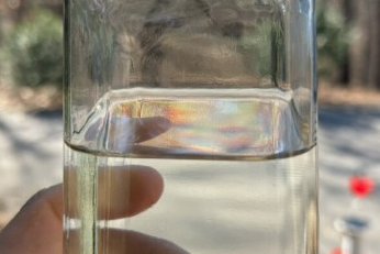 Aldridge said he had the instinct to conduct a home test by letting tap water sit in a jar overnight, and in the morning, he described a thin layer of separation on top with “a rainbow slick on it.”