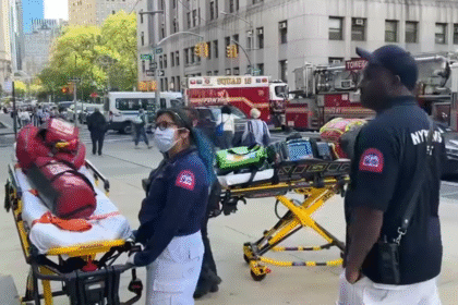 Firefighters and paramedics investigated a report of white powder at the Manhattan…