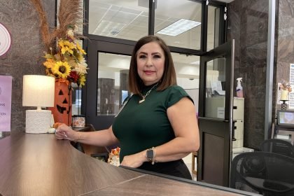 Bowie Middle School Welcome Center Clerk Mercedes Morales poses for a photo…