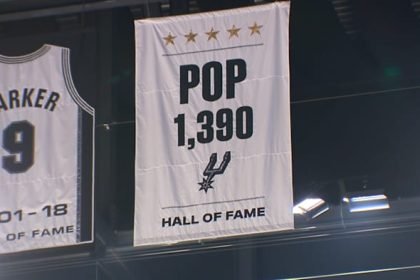 Spurs unveil Gregg Popovich’s banner, celebrating his 1,390 wins and 5 NBA titles