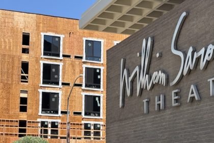 The Saroyan Theatre with the Courtyard Marriott hotel under construction in the…