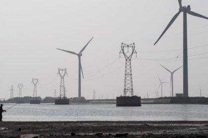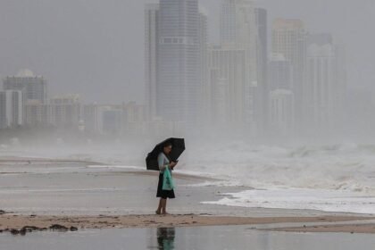 This file photo from Nov. 9, 2022, shows a Surfside beachgoer watching…