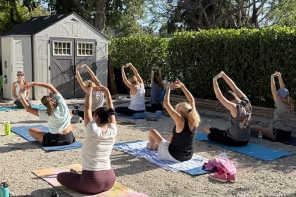 Kat Wheatley, of Key Largo Yoga, leads a class the morning of…
