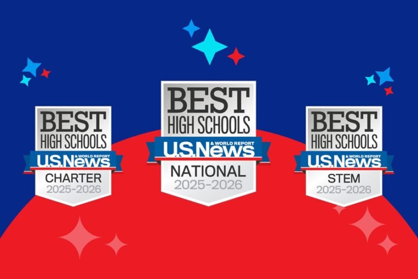 The U.S. News rankings evaluate schools on six factors: college readiness, college curriculum breadth, state assessment proficiency and performance, underserved student performance, and graduation rate. Nearly 18,000 schools were reviewed nationwide using 2022–23 academic year data.