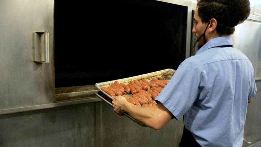 The 335,000-square-foot facility — roughly seven acres under one roof — brings together every part of the business for the first time. What used to be spread out — employee parking, the dry-goods warehouse, production plant, bakery, meat pit, salad-dressing lines and corporate offices — is now all connected.