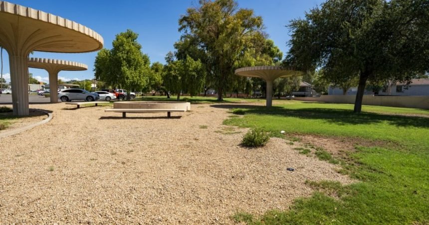 The parcel contains a pocket park that rests between a historically significant Chase Bank location at 4401 E. Camelback Road and a commercial center anchored by The Henry, a popular restaurant and meeting spot from Sam Fox’s Fox Restaurant Concepts — which also has its corporate offices in the complex.