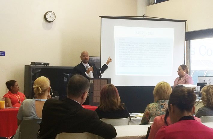 Bronx Borough President Ruben Diaz Jr. speaks about his legislation creating a system of grading nail salons and other cosmetology businesses before the New York Women’s Chamber of Commerce on Wednesday, May 13. The event, which took place at Hostos Community College, was attended by over 60 Latino and Latina small business owners in the cosmetology industry.
