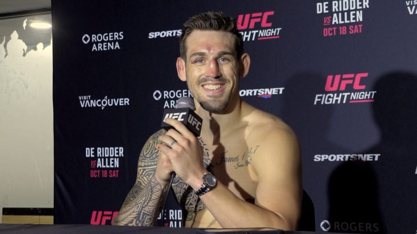 Allen had a rough start to the fight as de Ridder (21-3 MMA, 4-1 UFC) mounted him in the opening minute. But after he survived dominant positions and submission attempts, Allen totally exhausted de Ridder – so much so that the Dutchman’s team called off the fight between the fourth and fifth round. The scenario was rare, but one Allen envisioned.