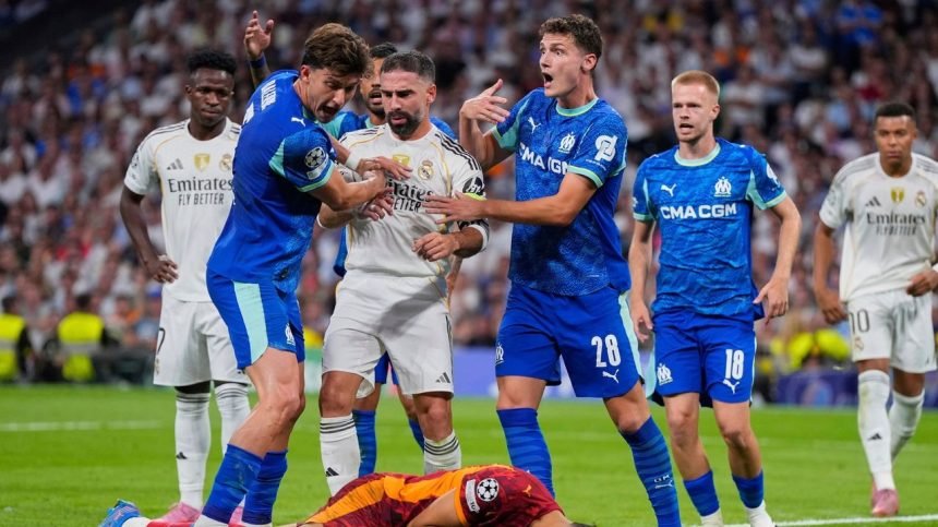 MADRID — Veteran Real Madrid defender Dani Carvajal was sent off after head-butting Marseille goalkeeper Gerónimo Rulli in a Champions League match Tuesday.