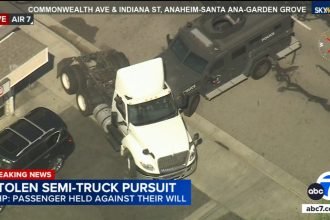 Los Angeles area police chases: SWAT vehicle slams into semi-truck during CHP chase in Orange County; driver in custody
