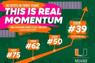 University of Miami MBA rises to No. 39 in U.S. News rankings, highest in school history