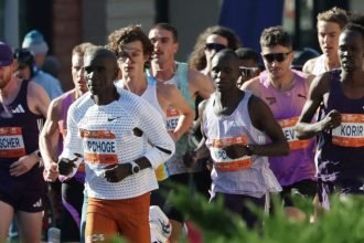 Kipchoge started the New York City Marathon in the leaders’ pack, keeping…