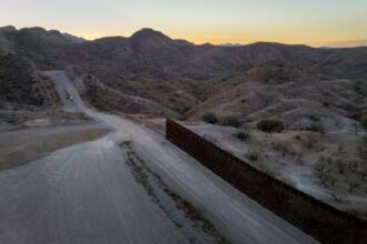 From an aerial view, the U.S.-Mexico border fence ends with a gap…