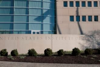 A view of the United States Institute of Peace (USIP) building headquarters…