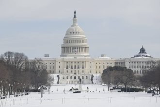 A view of the snow covered streets as heavy snowfall blanketed Washington,…