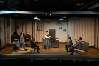 The stage at Atlanta's Synchronicity Theatre is set as an office at…