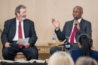 September 4, 2025 Atlanta Fed president Raphael Bostic (right) in conversation with…