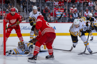 Swayman makes 41 saves, Bruins score 3 in 3rd to rally past Red Wings