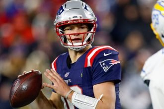Drake Maye threw a touchdown pass to Hunter Henry in the fourth…