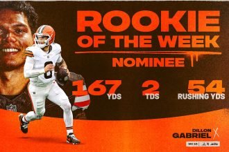 Dillon Gabriel nominated for NFL Rookie of the Week for Week 10