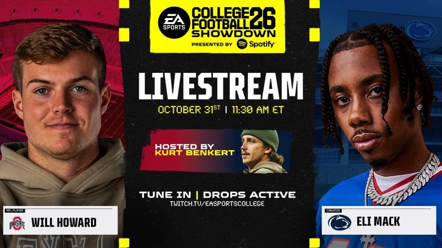 The latest matchup in the College Football 26 Showdown series features Will Howard returning to rep his Buckeyes, while content creator Eli Mack tries to upset the #1 seed as the Penn State Nittany Lions. Tune in on October 31 to see which school secures the first bragging rights of the weekend.