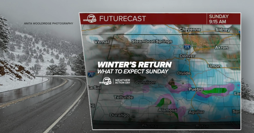First, let’s look ahead to Sunday’s snowfall and cold temps across the Front Range.“The cold air will dive into Colorado bringing temperatures in the 30s with chances of snow on Sunday,” said Denver7 meteorologist Stacey Donaldson. “In terms of the snowfall forecast, just some light amounts in the Denver area with heavier amounts in the higher elevations.”