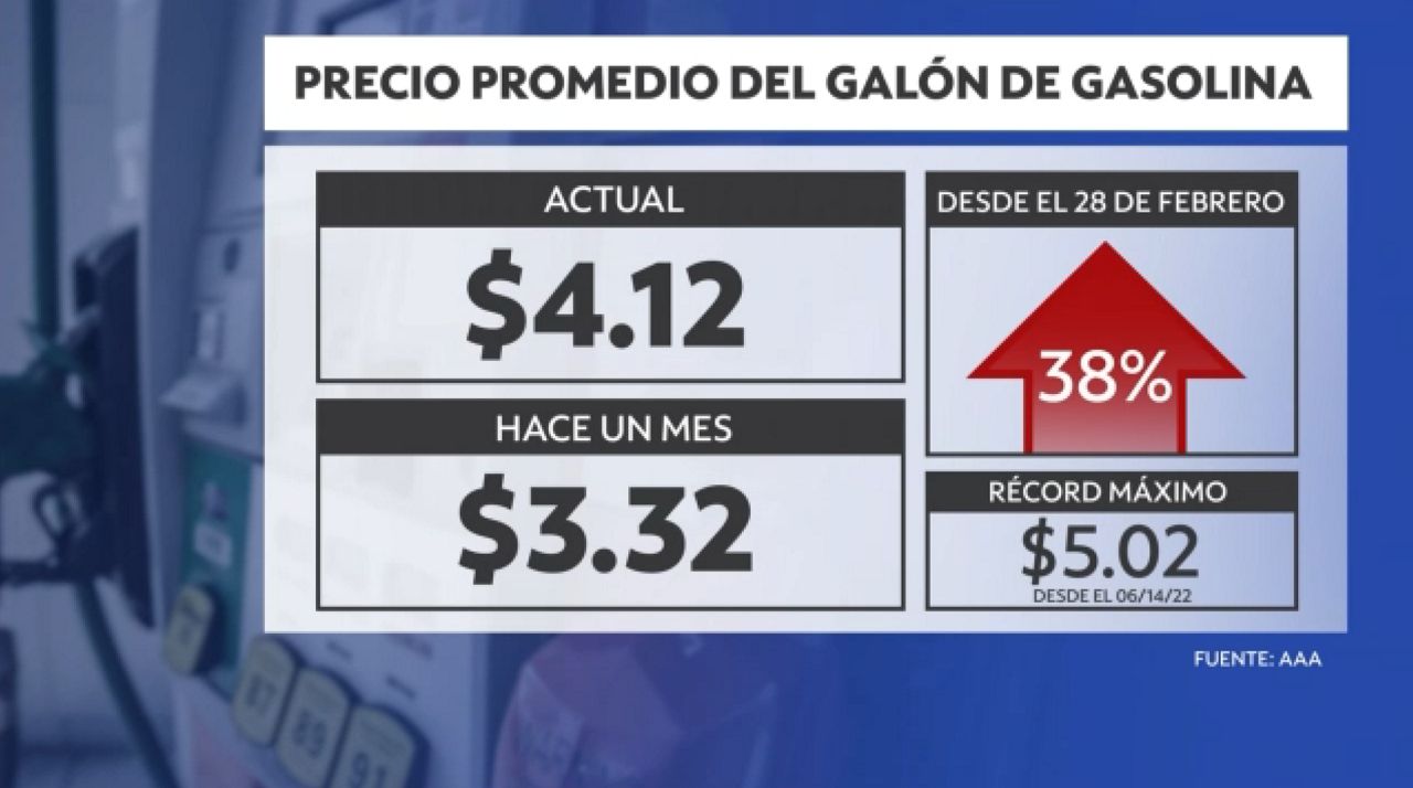Acaba de alcanzar los 4 dólares y 12 centavos el galón, un 38 % más que cuando empezó la guerra en Irán, y el precio más alto desde 2022.