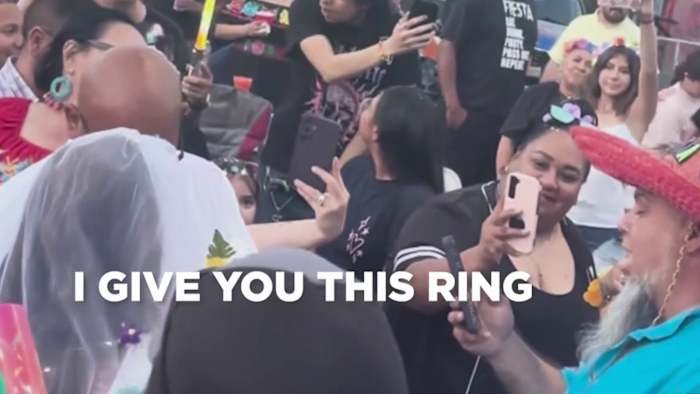 With the sounds of Fiesta all around them, the couple said “I do,” and plenty of people stopped to celebrate.