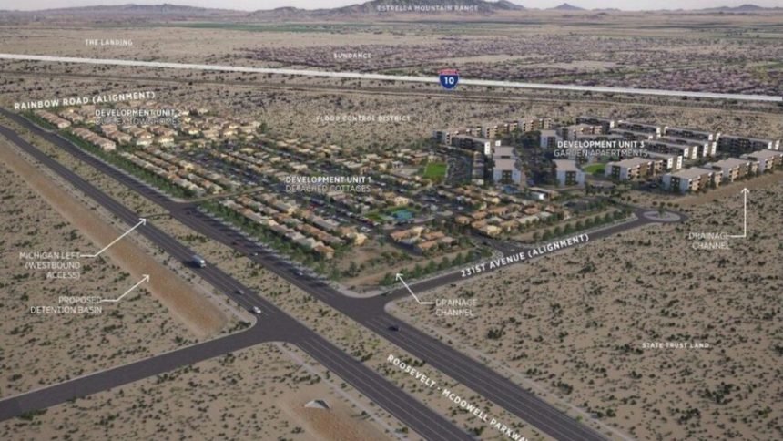 The Chandler-based developer and Denver-based Norris Design are teaming up to build out the 64.45-acre vacant parcel at the southwest corner of Roosevelt Street and Rainbow Road alignments in Buckeye, near massive retail and medical office developments.