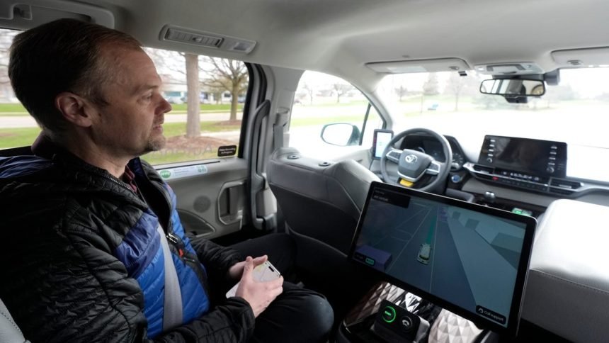 I’m sitting in the back seat next to Frank Renwick, May Mobility’s vice president of marketing and communications. Next to the CEO is a Free Press videographer who peppers him with questions and adjusts his camera equipment. The front row is empty.
