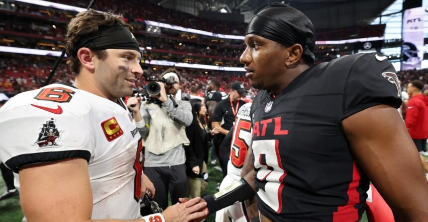 - That was nice to see, by the way. Obviously you’d prefer to get some lost yardage in the mix there that the Falcons didn’t, and you’d look for the pass rush to deliver in big moments all game long. But the Falcons did ratchet up the pressure and got it consistently, even on plays where things went awry, like Ruke Orhorhoro’s roughing the passer call where he pressured Mayfield into a throwaway and then made contact anyways. Hopefully they can get after J.J. McCarthy next week with even greater vigor.
