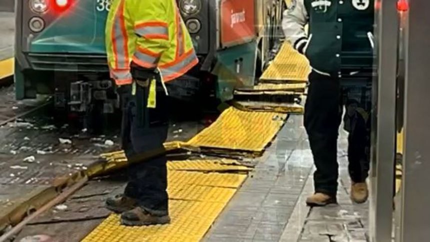 BOSTON (WHDH) – Green Line service has been suspended between Park Street and Government Center stations after a train derailed on Sunday.