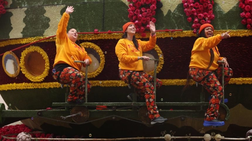 Getty A San Francisco float rolls down the route of the 137th Rose Bowl Parade on Thursday, Jan. 1, 2026,