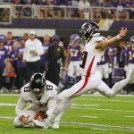 The Illini brought pressure but Elijah Sarratt won the one-on-one battle for a 5-yard touchdown pass. Fernando Mendoza is 20 of 22 for 256 yards passing for five touchdowns. Sarratt has eight catches for 81 yards and two scores.