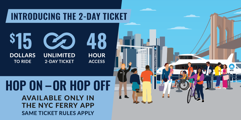 For complete ticketing information and pricing, visit ferry.nyc or the NYC Ferry app.