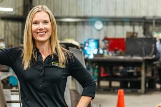 Melanie Hellwig-White, fourth-generation CEO of Hellwig Products, on the production floor at the company's Visalia facility. Hellwig-White is also serving her first year as chairperson of the Specialty Equipment Market…