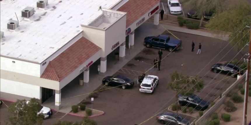 Video from the AZFamily news chopper showed multiple police officers outside a strip mall on the northwest corner of the intersection. The parking lot was taped off, and multiple evidence markers were on the ground.