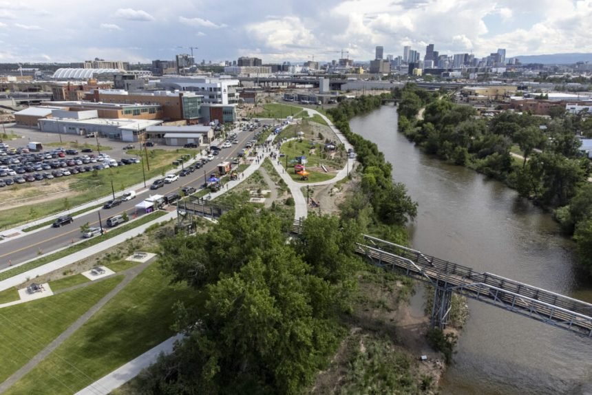 The new Riverfront Open Space at the National Western Center. June 9, 2023.