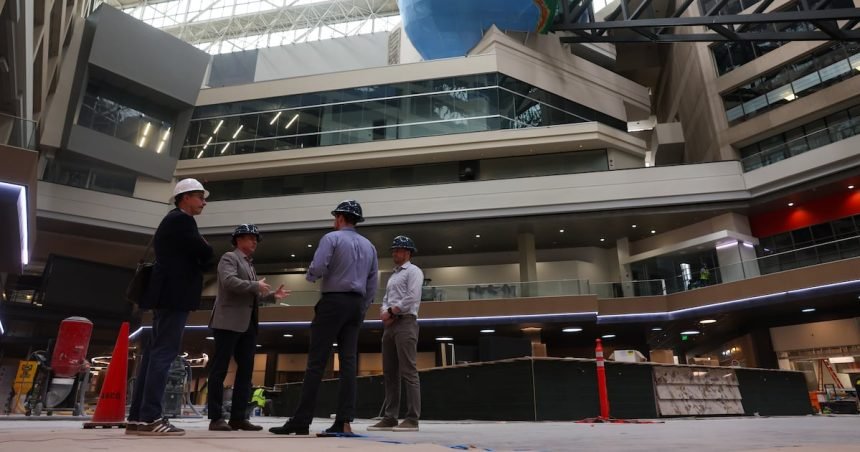 Chris Eachus, a founding partner of CP Group, gives a tour of The Center, formerly CNN Center, in Atlanta on March 30, 2026. (Arvin Temkar/AJC)