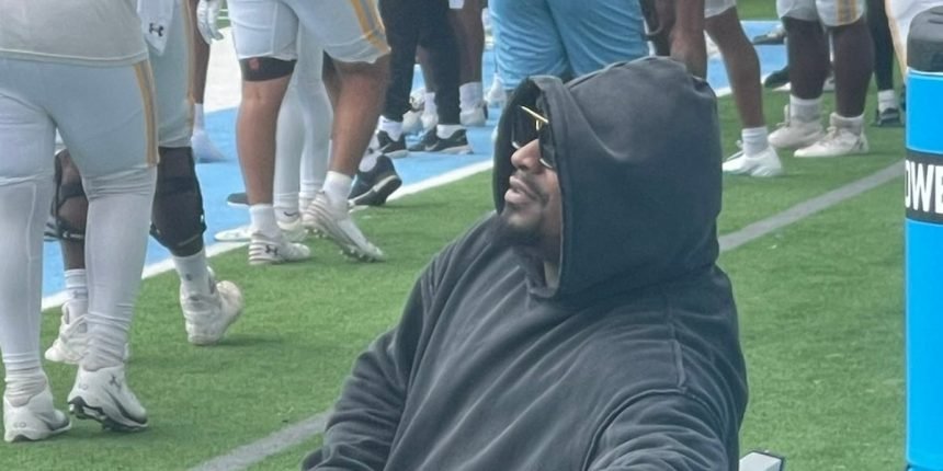 Head coach Marshall Faulk had former NFL running back Marshawn Lynch on the sidelines watching the action. Lynch and Jaguars offensive line coach Donald Penn were Oakland Raiders teammates.
