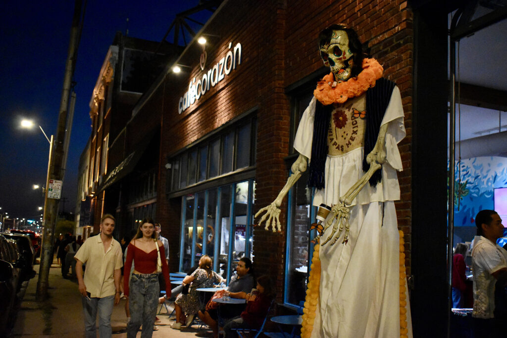 Café Corazón decked out for October’s First Fridays festivitieis and “A Night Without Borders”; photo by Nikki Overfelt Chifalu, Startland News