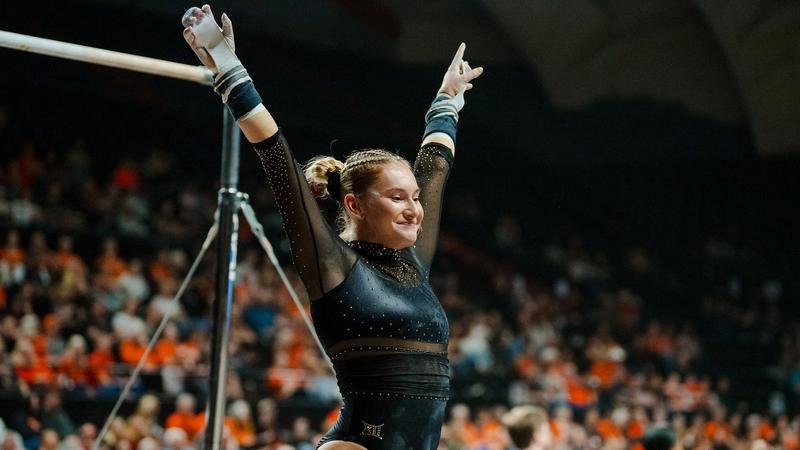 Junior Maddison Reidenbach finished off a breakout floor season with a 9.875 that was just off Rorich’s and Bhatia’s pace. She ended the season without scoring below 9.850 on the event all year. Cooley anchored the lineup but saw her rebounding split jump out of her first pace carry her out of bounds to begin the routine.