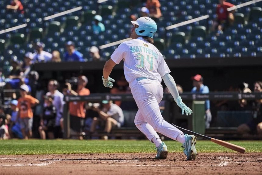 • Outfielder Jaxon Matthews (Hough HS, Davidson, N.C.) hit a grand slam the other way at 105 mph in the first inning, which earned him the MVP award for the game. He struck out in his next three at-bats, though, and he’s got a late hitch in his swing that’s going to be hard to eliminate or get around. He’s committed to Clemson.