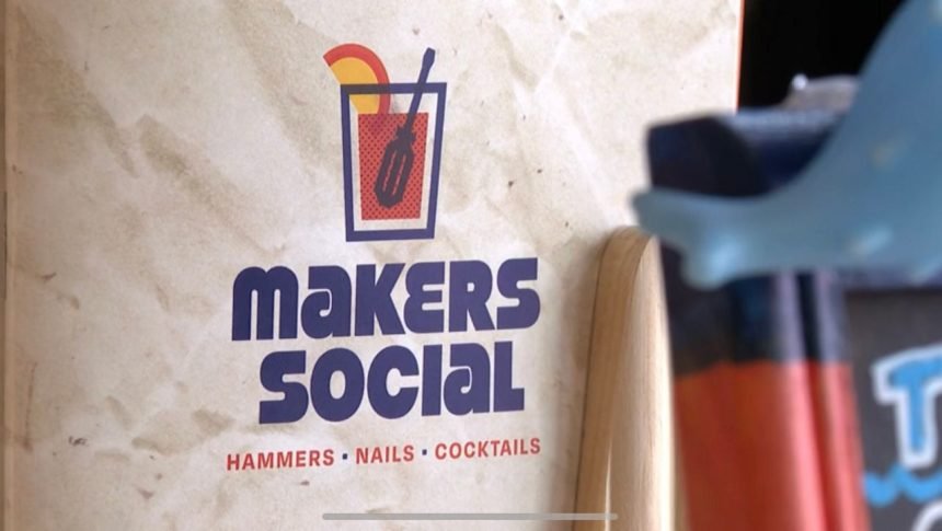 Owner Megan Pando opened the business in February 2020 and describes it as “a full service DIY bar where you can make craft projects from jewelry making to leatherwork and woodwork and even concrete pouring and then sip some cocktails along the way”.